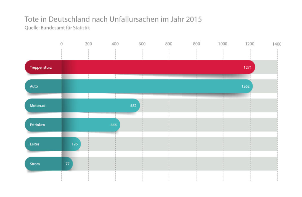 Tausend Deutsche sind im Alter nicht mehr so sicher auf den Beinen, denken aber trotzdem, dass Sie keinerlei Hilfsmittel für den Alltag benötigen. Erst wenn es zu spät ist, denken viele über einen Treppenlift nach. Die Statistik verrät uns, dass es mehr Tote nach einem Sturz auf der Treppe gibt als bei Verkehrsunfällen mit dem Auto. Das sollte zum nachdenken geben.