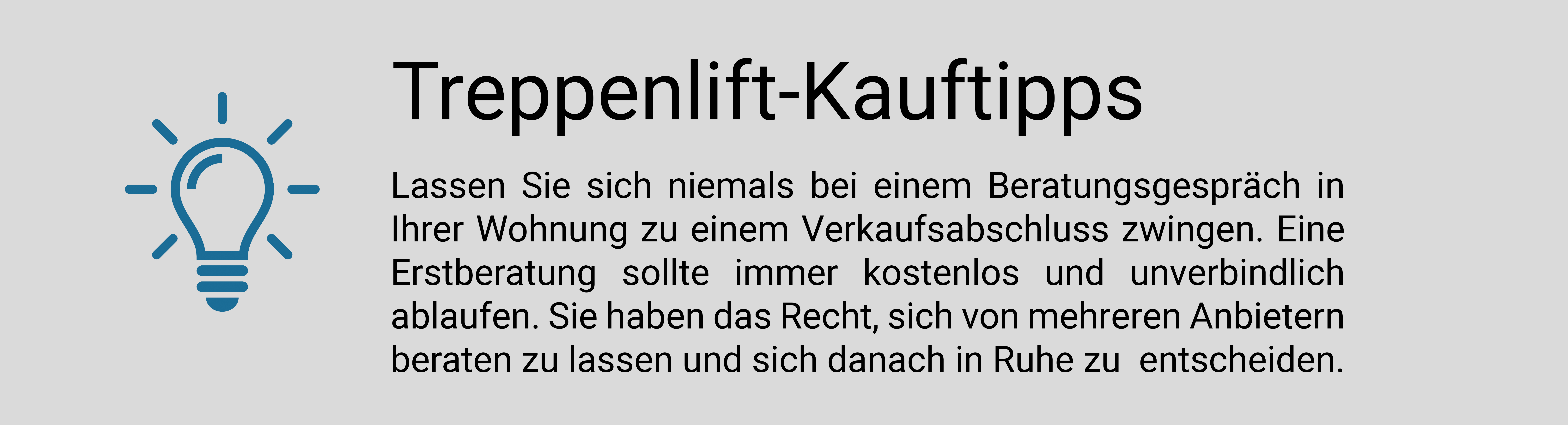 Sie sollten keinesfalls Anbieter kontaktieren, die Ihnen pauschale Preise für einen Lift nennen können. Treppenlifte sind Maßanfertigungen, die sich an Ihren Bedürfnissen und Ihren baulichen Voraussetzungen orientieren. Angebote mit Pauschalpreisen sind unseriös.